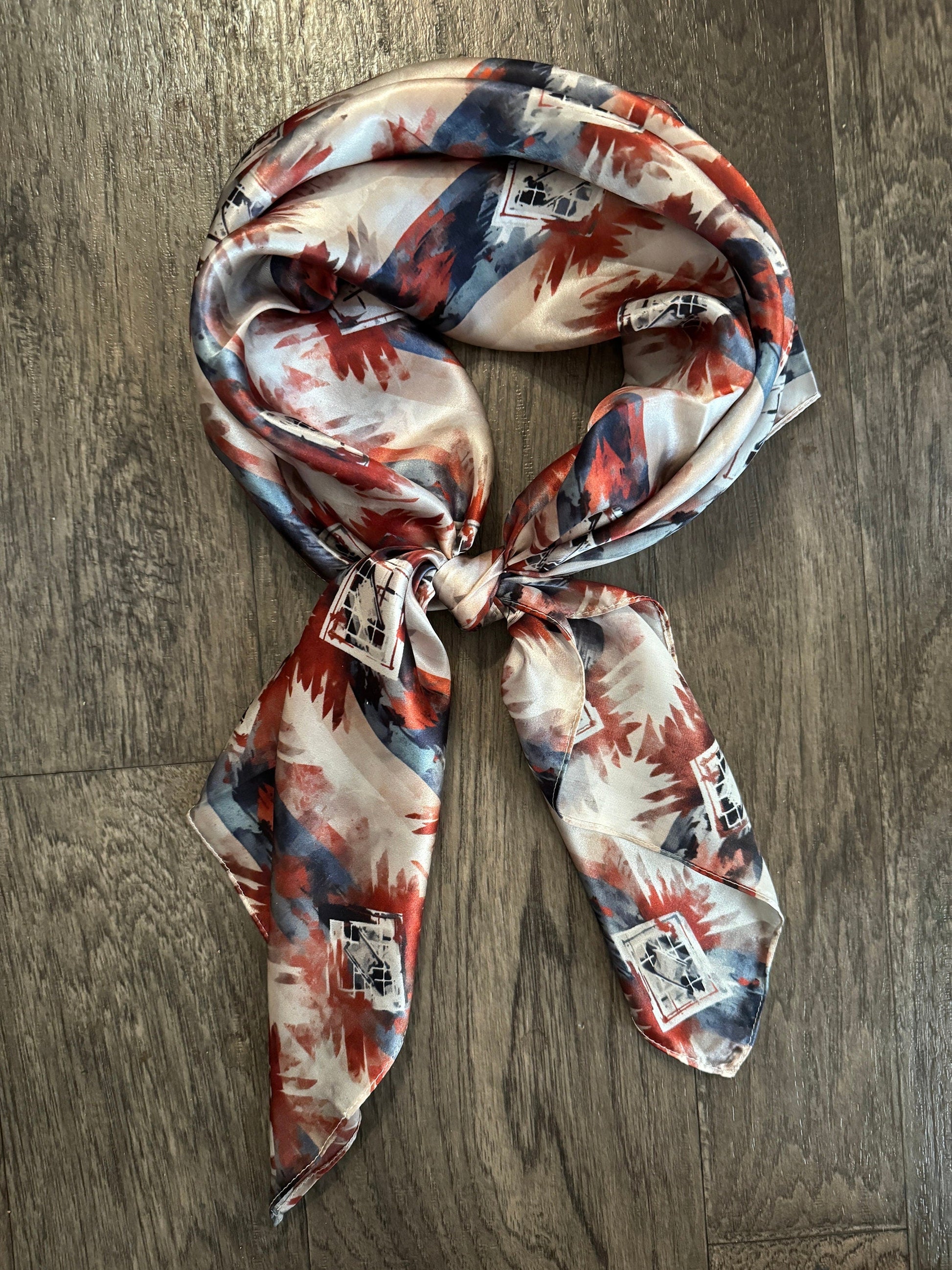Silk Wild Rag Navy Blue Copper Ivory watercolor tribal print by Double B Wild Rags