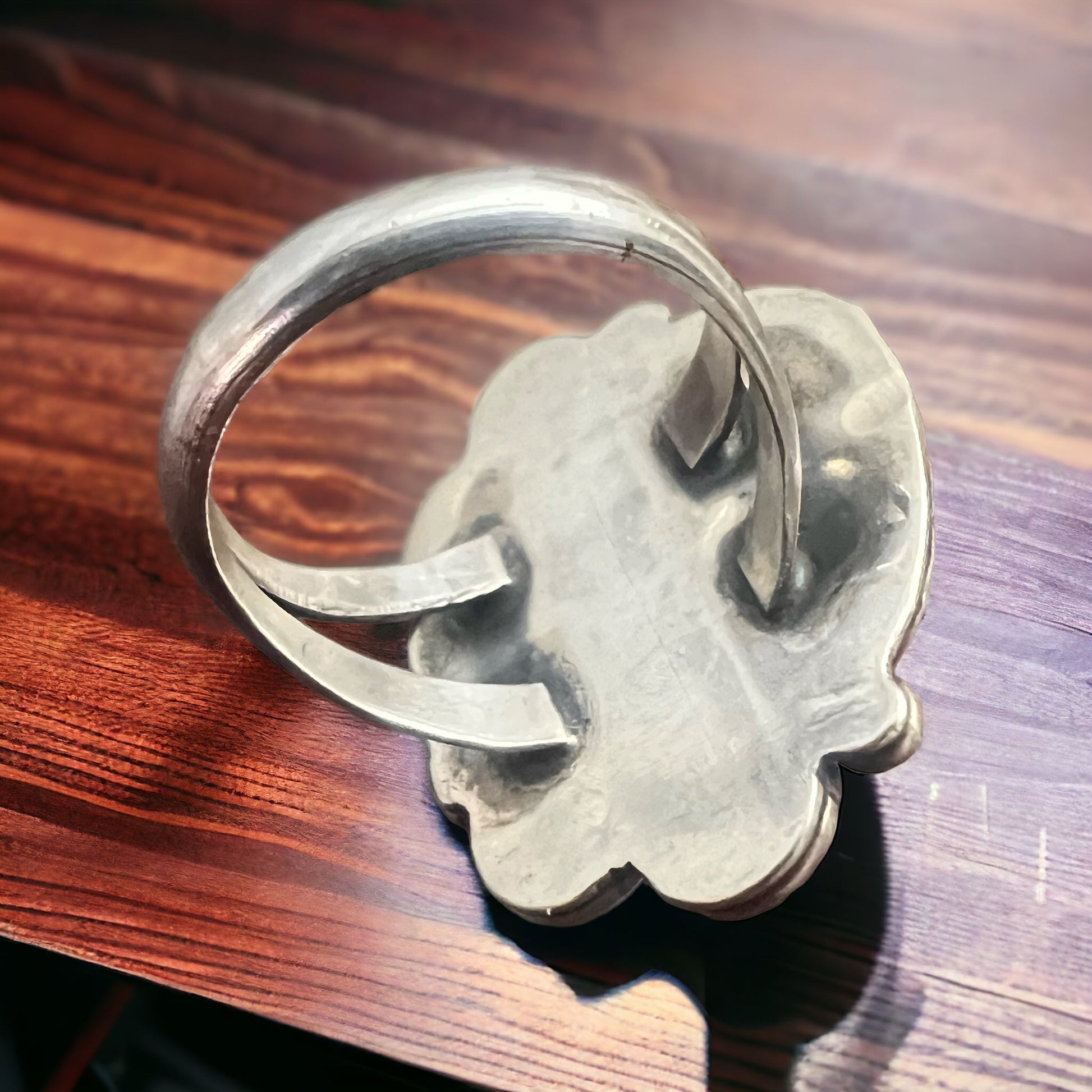 Turquoise Ring with Sterling Leaf- Size 7.5