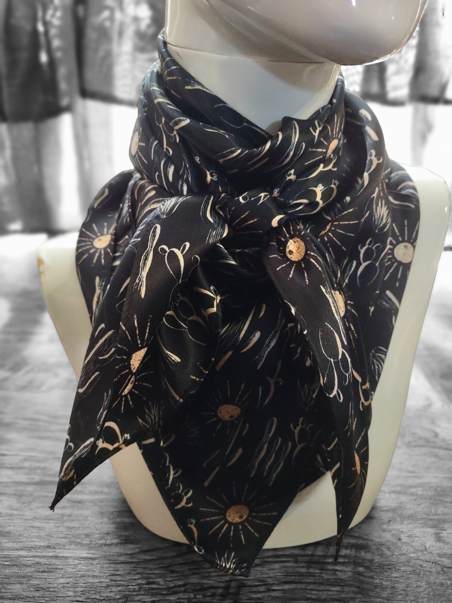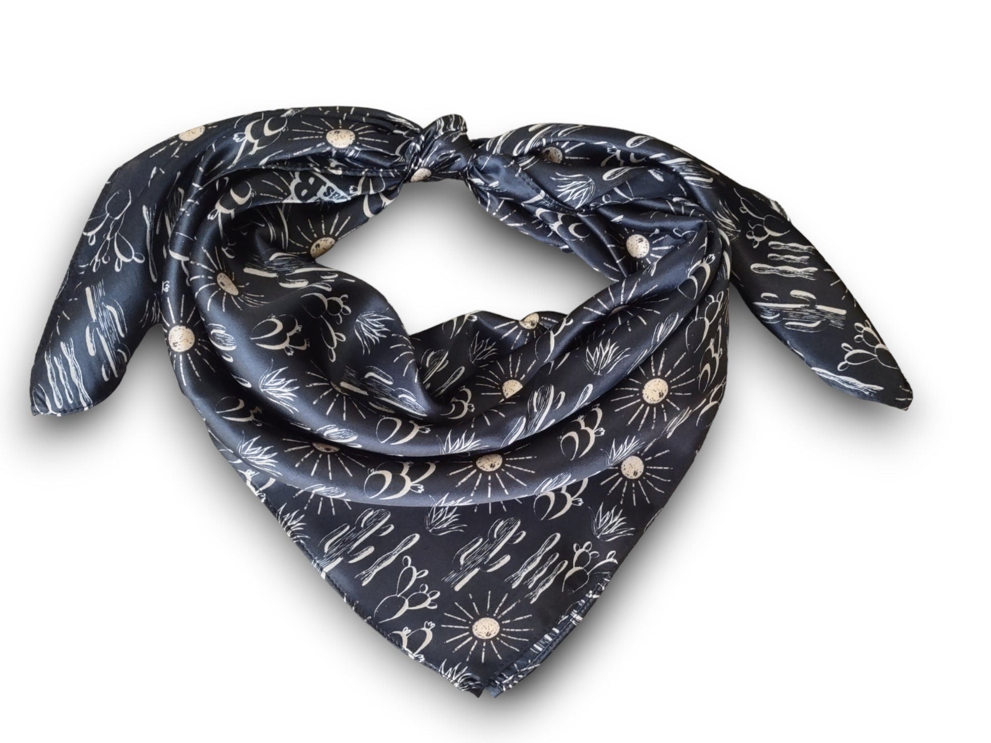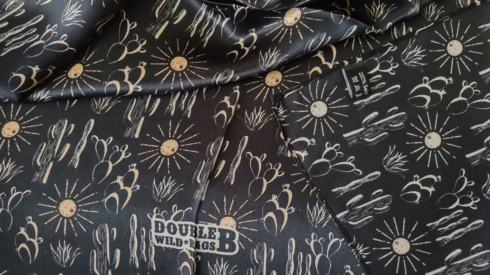 Wild Rag 100% SILK Black Cactus and Sun Western Neck Scarf Bandanna by Double B Wild Rags